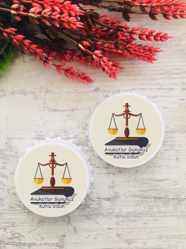 Avukat Temalı, Terazi, Kitap Desenli Yuvarlak Açacak Magnet