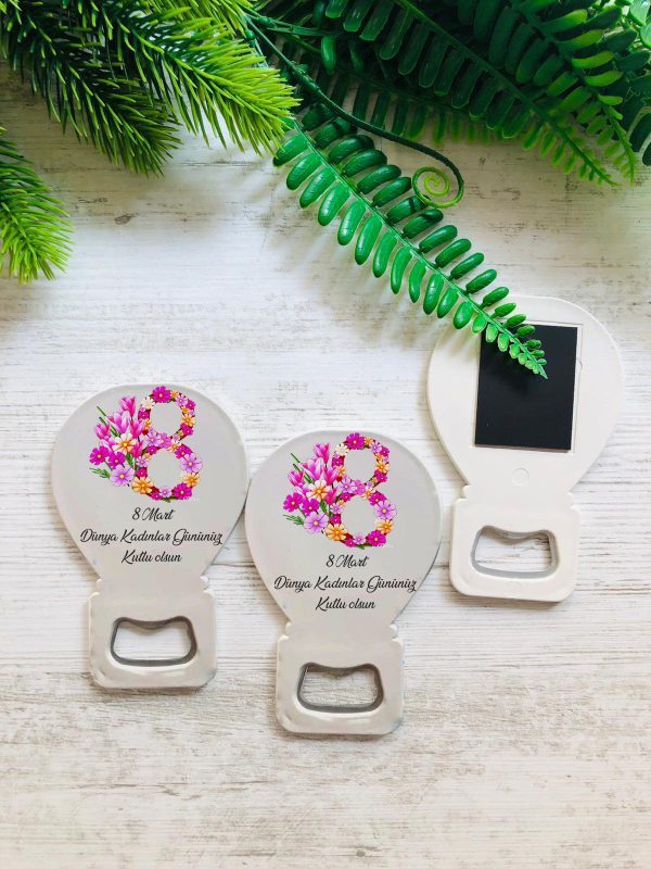Çiçek Desenli, 8 Mart Yazılı Balon Açacak Magnet