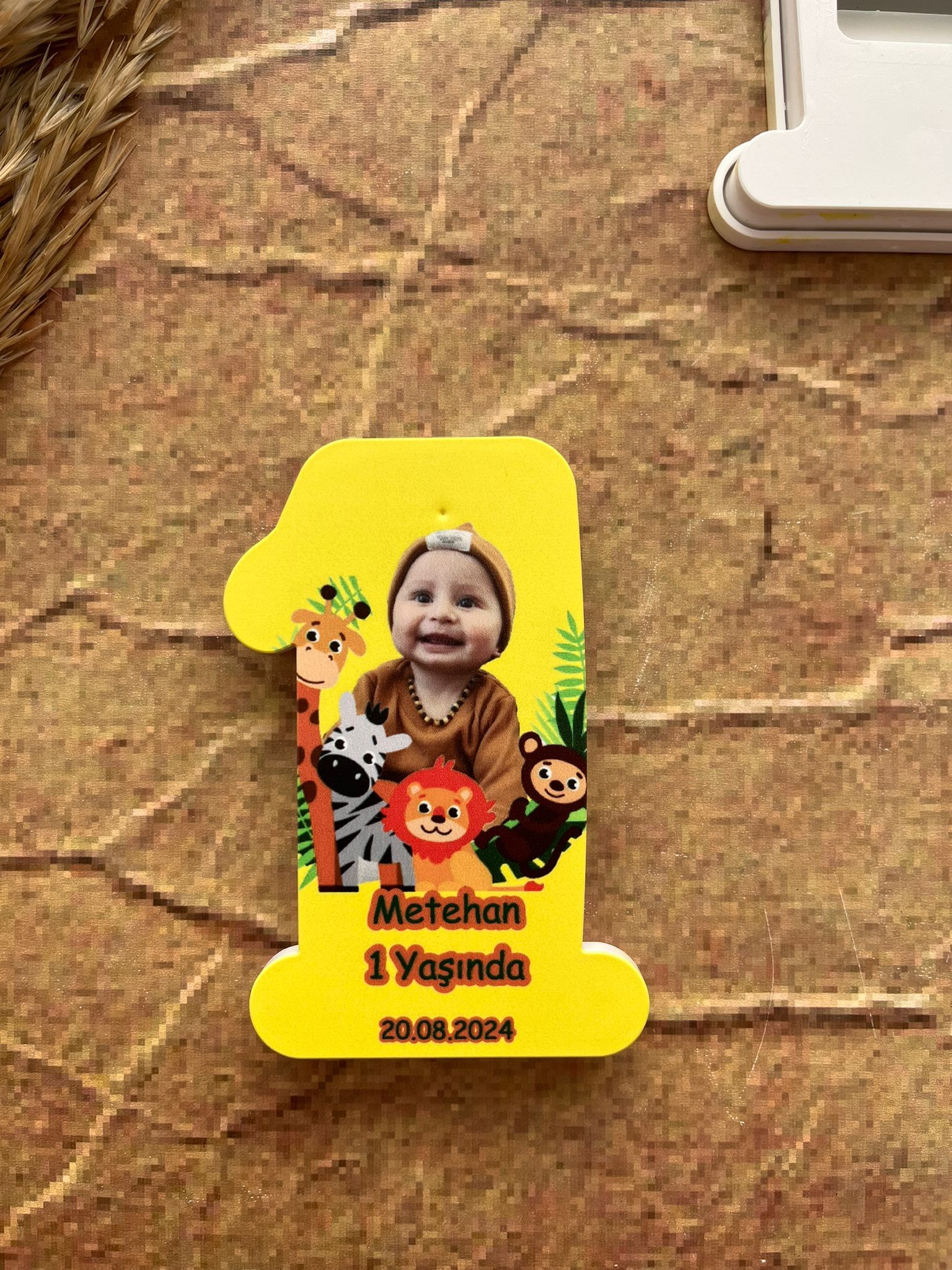 Fotoğraf baskılı, sevimli hayvanlar temalı, sarı zemin 1 şeklinde açacak magnet