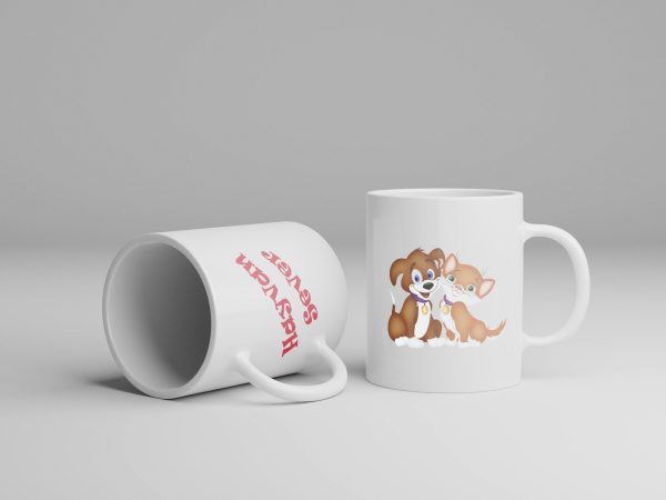 Kedi Köpek Desenli, Hayvan Sever Temalı Kupa Bardak
