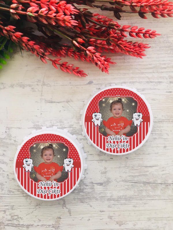 Kırmızı Zemin, Diş Desenli, Fotoğraf Baskılı Yuvarlak Açacak Magnet