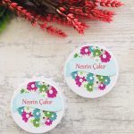 Mor, Mavi, Beyaz Renk, Çiçek Desenli Yuvarlak Açacak Magnet