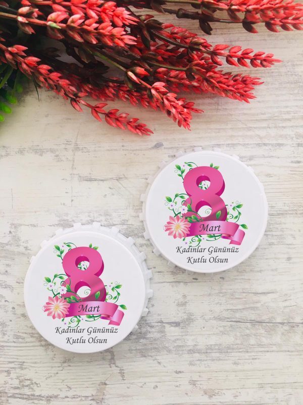 Pembe Çiçek, Sarmaşık Desen, 8 Mart Yazılı Yuvarlak Açacak Magnet