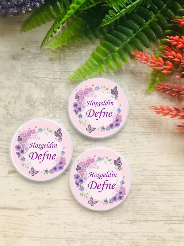 Pembe Zemin, Kelebek ve Çiçek Desenli, Buton Açacak Magnet