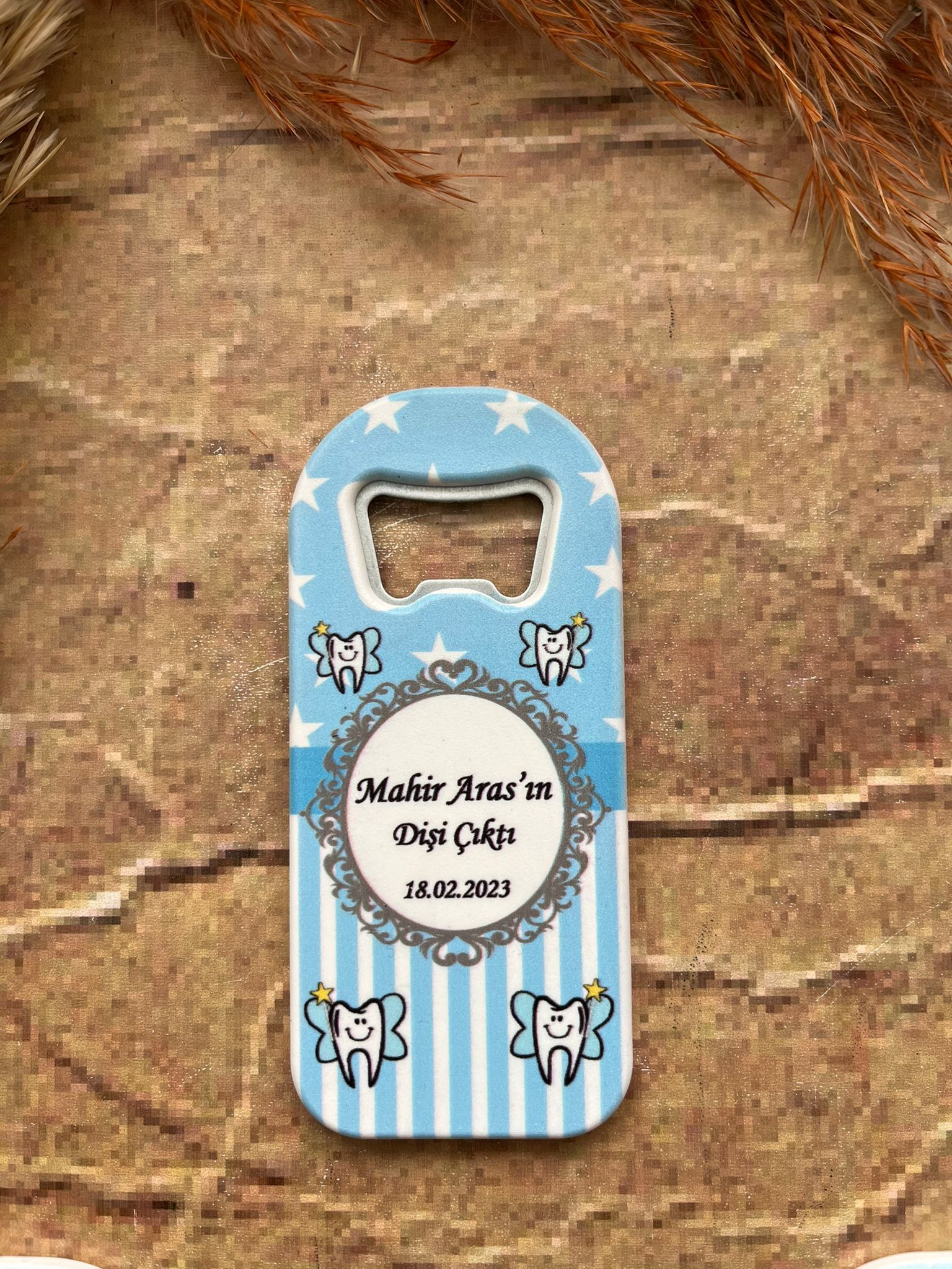 Yıldız ve Çizgi Desenli, Diş Temalı Dik Açacak Magnet