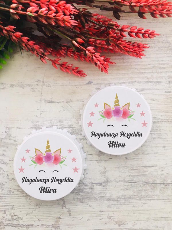 Yıldız ve Unicorn Desenli Yuvarlak Açacak Magnet