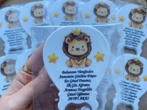 Aslan ve yıldız desenli doğum temalı balon açacak magnet