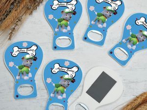 Mavi zemin üzerine sevimli köpek kemik temalı balon açacak magnet