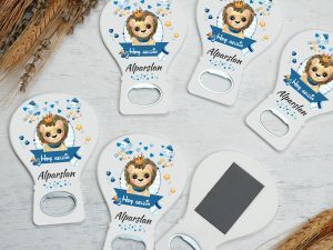 Taçlı aslan ve bebek eşyaları temalı balon açacak magnet
