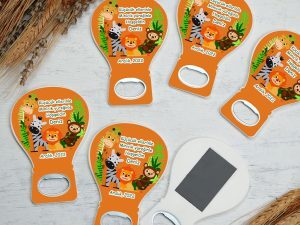 Turuncu zemin ve safari temalı fotoğraf baskılı balon açacak magnet