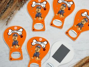 Turuncu zemin ve sevimli köpek temalı balon açacak magnet
