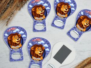 Yuvarlak çerçeve içerinde aslan temalı balon açacak magnet