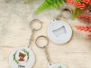 Şapkalı ayıcık yaprak çerçeve desenli açacak anahtarlık