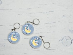 Şapkalı uyuyan ayıcık ve gökyüzü temalı açacak anahtarlık