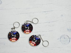 Ateş desenli, yarış araba temalı açacak anahtarlık