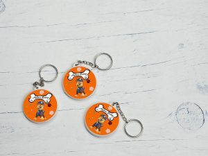 Turuncu zemin ve sevimli köpek temalı açacak anahtarlık