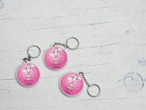 Uçan balon pembe zemin desenli açacak anahtarlık
