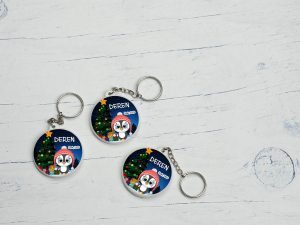 Çam ağacı ve penguen temalı açacak anahtarlık