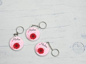 Büyük kırmızı papatya desenli açacak anahtarlık