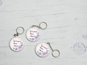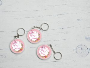 Çiçek zemin ve çerçeveli doğum günü temalı açacaklı anahtarlık