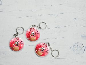 Çiçek çerçeveli, tavşan desenli doğum günü temalı açacaklı anahtarlık