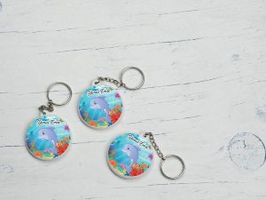 Deniz altı gökyüzü ve yunus desenli açacak anahtarlık