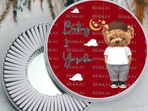 Kırmızı zemin ve gülen ayıcık temalı sütlü madlen 100 ADET
