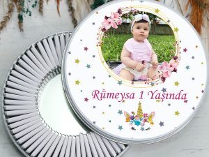 Unicorn desenli pembe çiçek çerçeveli fotoğraf baskılı sütlü madlen 100 ADET