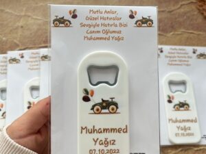 ₺20,00 – ₺28,00Dik Açacaklı Magnet Sevdiklerinize özel günlerde size ait bir hatıra bırakmak isterseniz bu ürün tam size göre. Düğün, Nişan, Nikâh, Kına, Doğum Günü, Sünnet, Mevlit, Diş Buğdayı gibi tüm özel günlerinizde kullanabilirsiniz.