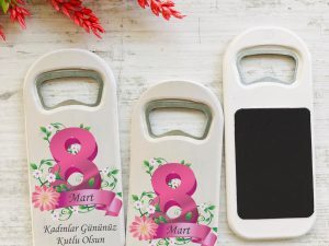 Pembe Çiçek, Sarmaşık Desen, 8 Mart Yazılı Dik Açacak Magnet