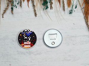 Ateş desenli, yarış araba temalı buton açacak magnet