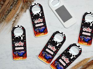 Ateş desenli, yarış araba temalı dik açacak magnet
