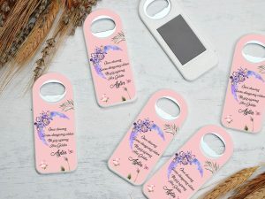 ₺20,00 – ₺28,00Dik Açacaklı Magnet Sevdiklerinize özel günlerde size ait bir hatıra bırakmak isterseniz bu ürün tam size göre. Düğün, Nişan, Nikâh, Kına, Doğum Günü, Sünnet, Mevlit, Diş Buğdayı gibi tüm özel günlerinizde kullanabilirsiniz.