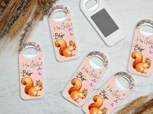 Çiçek çerçeveli ve çiçek taçlı sincap temalı dik açacak magnet