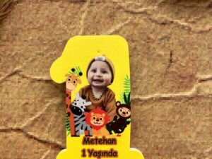 Fotoğraf baskılı, sevimli hayvanlar temalı, sarı zemin 1 şeklinde açacak magnet