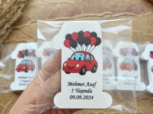 Kırmızı araba ve balon temalı1 şeklinde açacak magnet