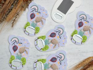 Uçan balon gökkuşağı ve tavşan temalı ayak açacak magnet