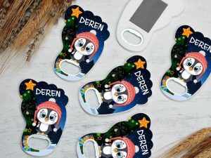 Çam ağacı ve penguen temalı ayak açacak magnet
