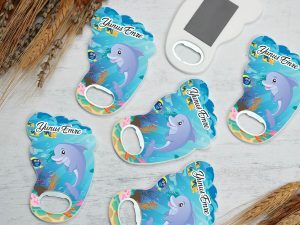 Deniz altı gökyüzü ve yunus desenli ayak açacak magnet