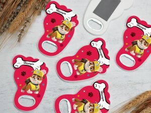 Kırmızı zemin üzerine sevimli köpek temalı ayak açacak magnet