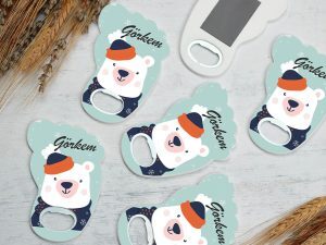 Kar desenli şapkalı ayıcık temalı ayak açacak magnet