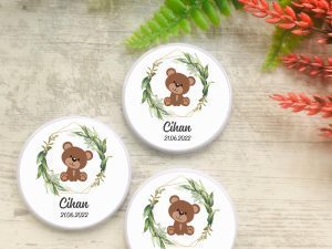Sevimli Ayıcık, Yeşil Yaprak Çerçeve Desenli,Buton Açacak Magnet