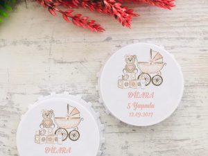 Bebek Arabalı, Gülen Ayıcık Desenli Yuvarlak Açacak Magnet