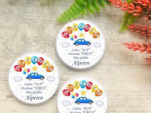 Balon, Güneş, Araba Desenli, Buton Açacak Magnet