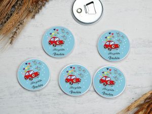 Araba içerisinde çift temalı, balon ve gül desenli buton açacak magnet