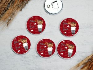 Kırmızı zemin ve gülen ayıcık temalı buton açacak magnet