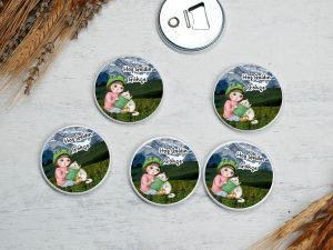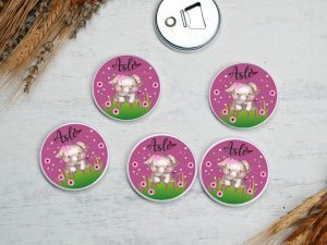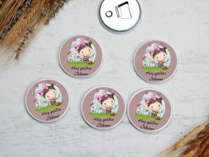 Kelebekler bahçe gülen kız çocuğu temalı buton açacak magnet