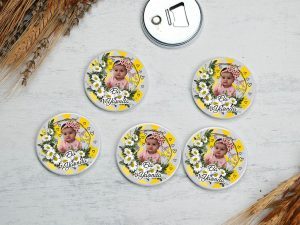 Papatya çerçeveli fotoğraf baskılı buton açacak magnet