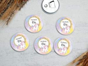Pembe zemin, yıldız desenli, diş perisi temalı buton açacak magnet