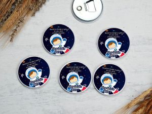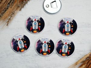 Uzay ve astronot temalı fotoğraf baskılı buton açacak magnet